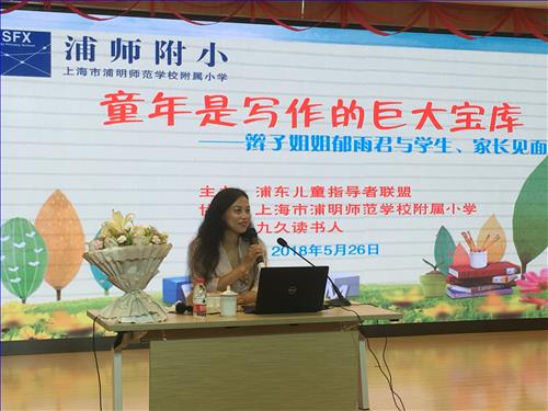 在一场暴雨之后的周六下午,空气清新了很多,气温也让人感觉舒适。这样一个周末,有一群孩子,没有在家长的带领下去参加补习班,也没有手捧手机刷个不停,而是一起走进了浦师附小的礼堂,参加了一场名为《童年是写作的巨大宝库》——郁雨君和你聊《我们小时候》的读书见面会。