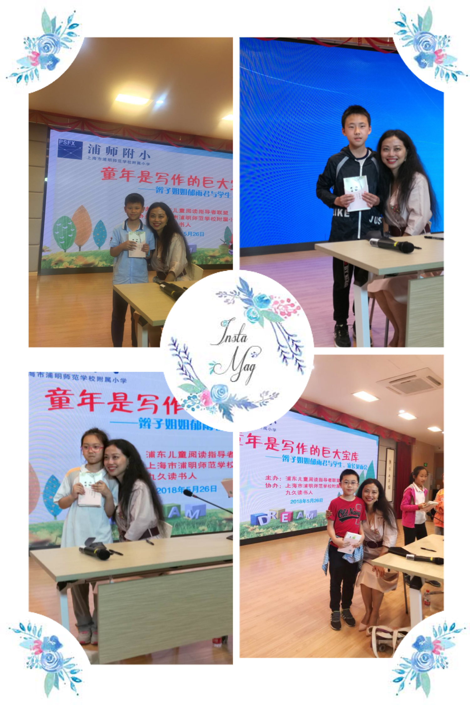 这是由浦东新区儿童阅读指导者联盟、浦师附小、九久读书人共同主办的一次儿童作家与家长、学生的见面会。学校有幸得到了20张入场券,蓝村校区和懿德校区的12位同学,7位家长在倪老师的带领下参加了见面会。