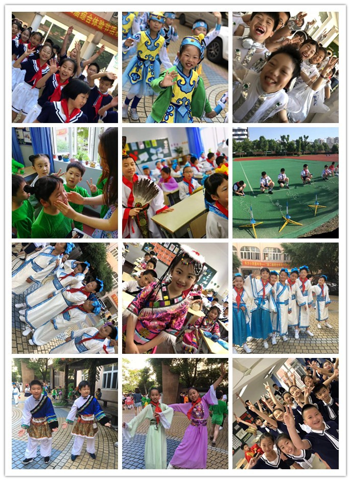 当日上午,两个校区的孩子们早早地来到学校,鲜艳华美的个性盛装、独具创意的展演道具、灿烂愉悦的童真笑脸、家长志愿者的亲情陪伴,晴空万里的好天气为美丽的校园带来了无限的生气和活力。