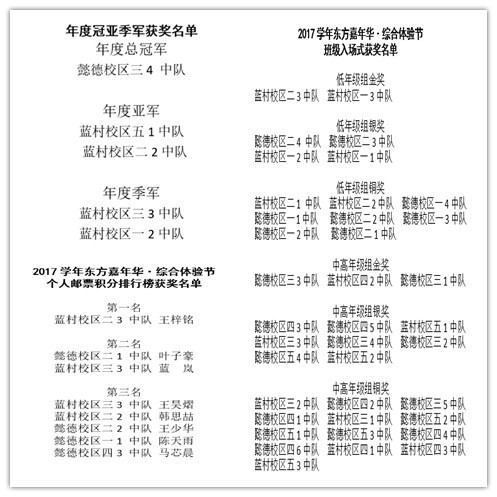 本届综合体验节为期两个月时间,在东方师生和家长们的共同努力下依次诞生了奥运星、科技星、智多星、小荧星、智多星、民族星的各类个人和集体的奖项,为闭幕式展演暨六·一庆典活动的如期进行付出了艰辛的努力,做好了扎实的准备。即使在阴雨绵绵的春夏之交、两校区教育资源差异不等的条件下,全体老师和孩子们克服了种种困难,用心为自己的节日、学校的节日打造了一台台、一幕幕、一个个精彩、完美、心仪的节目礼物。