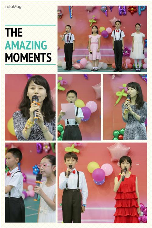 临近尾声,生日歌响起,三5班的学生手捧烛台上场,烛光点点,温馨动人。全校随之合唱摇摆。当生日歌渐歇,学生们也拿到了生日蛋糕和生日礼帽,烛光熄灭,同学们默默许下了美好的心愿。祝福的乐声响起,六位小主持一齐登场,霎时间,体育馆二楼二十余门礼炮齐放,纸花如落英缤纷漫天飘下,在学生的惊喜与欢呼中,在不舍与感动中,东方小学懿德校区三年级十岁生日庆祝活动圆满结束了。