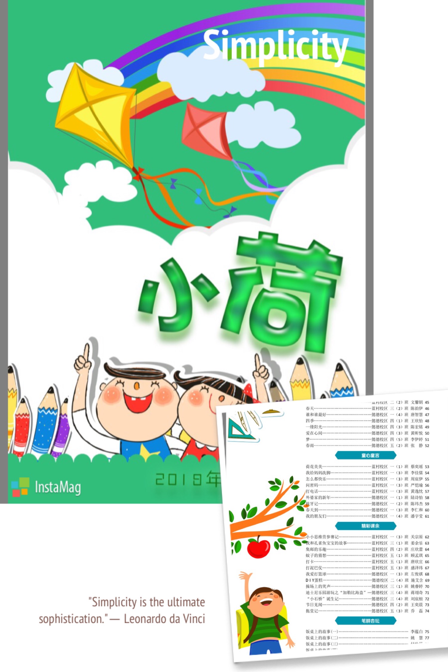 《小荷》搭建了分享的空间,让每一个东方学子,以“我笔写我心” 、“我心抒我情”为期刊灵魂,将自己的心声化为灵动的文字,让孩子们从小亲近文学,乐享童年!