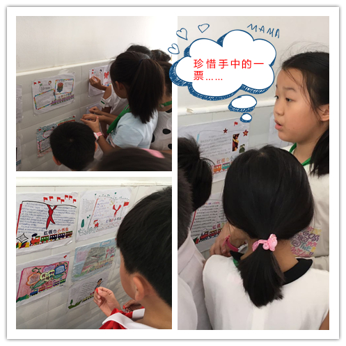 由各中队推选10名代表参与点赞投票,将手中小小的贴纸送给队员们最喜欢的作品。