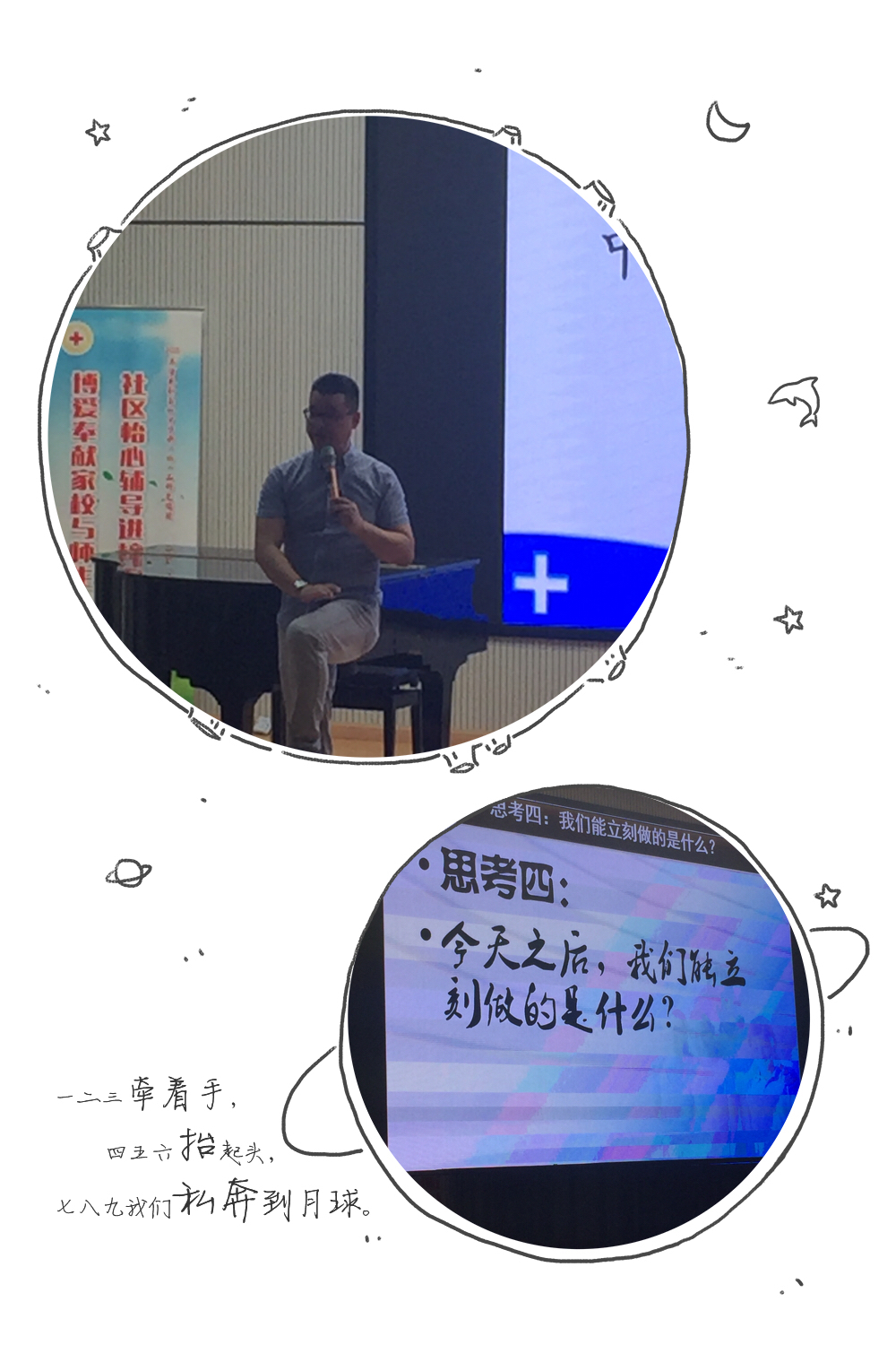 听完齐老师的讲座,特别是看完最后的一段视频,感触很深。在孩子的心里妈妈都是十分的,妈妈永远是最好的……可是妈妈们似乎都是抱怨颇多,永远都是抱怨孩子不够优秀,不够听话。确从不知道孩子的要求有多单纯。齐老师说的很对,在孩子的成长过程中,作为父母陪伴成长才是最关键与重要的。孩子不是天生优秀的,有很多外表光鲜成绩斐然的孩子,他们内心是否也如外表阳光呢?今天听完讲座,我想作为我自己,我要做的准备是:之后在孩子的几个关键期重点应该是关注孩子的心理健康,孩子的行为习惯。青春叛逆无法避免,但是我想做一个能沟通,能了解他的妈妈。希望他有良好的品格,让他成为可以有能力独挡一面,有勇气面对挑战与困难的孩子。