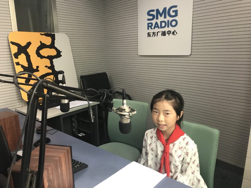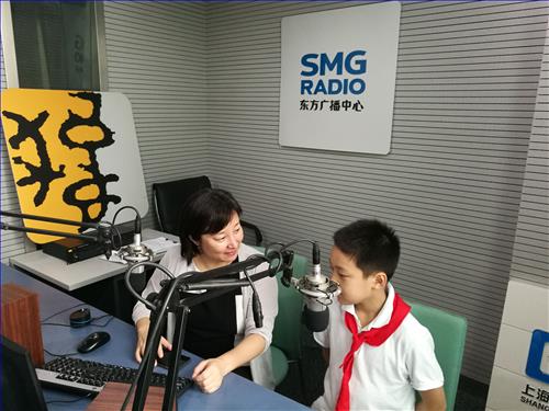 9月21日下午,东方小学蓝村校区五(1)班邵颜楚越同学、四(1)班由丰赫同学与塘桥学区其他八位小伙伴在塘桥第一小学金老师的带领下,来到了上海广播大厦的《智慧妈妈》栏目,走进录音间,朗读了以“感恩”为主题的诗歌、散文、故事,以及想对爸爸妈妈、老师同学、好朋友说的心里话。