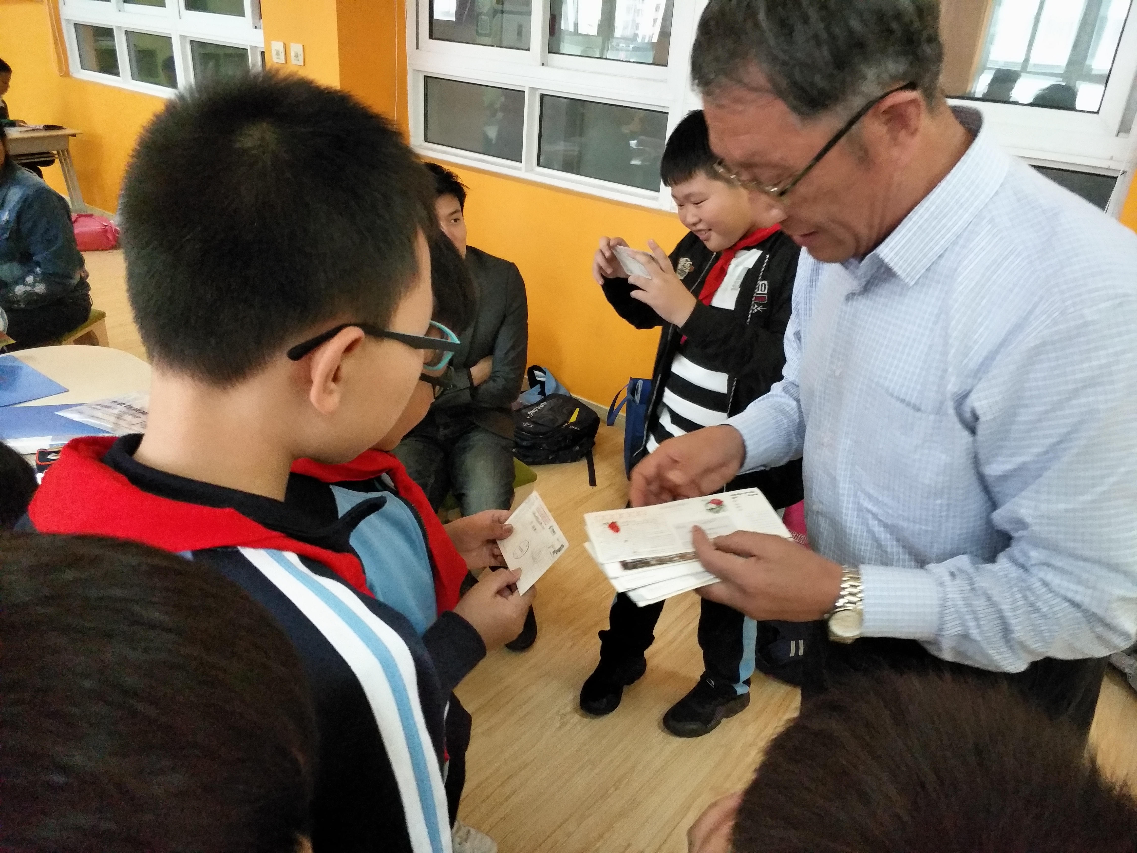 汪老师把自己珍藏多年的邮品送给了上课认真的学生,培养了学生的积极性。并发动身边的资源,通过汪老师全国各地的邮友与孩子写信的方式,真正将邮票与生活相结合,让每一位孩子感受集邮的乐趣。