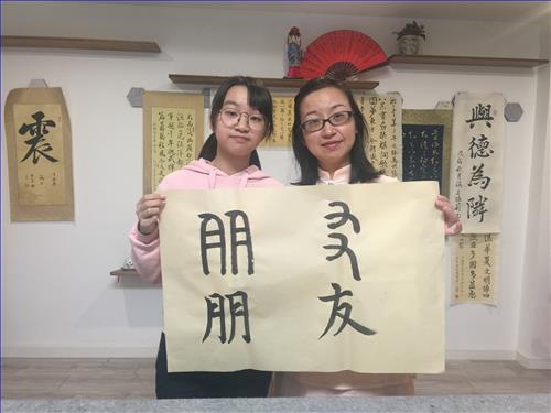 原来,在2018年10月,东方小学的联谊活动项目组拍摄了一个关于“汉字的演变”的视频。在视频中,东方小学已毕业的老校友苏励闻同学和她的妈妈包培莉女士用流利的英语介绍了中国的文房四宝和其用途,并借助“朋友”二字的不同书法体向英国小朋友展示了书法的魅力,“朋友”二字蕴含着中英两校的同学们能够成为好朋友,相互交流、相互帮助,长长久久地影响着对方,共同进步。