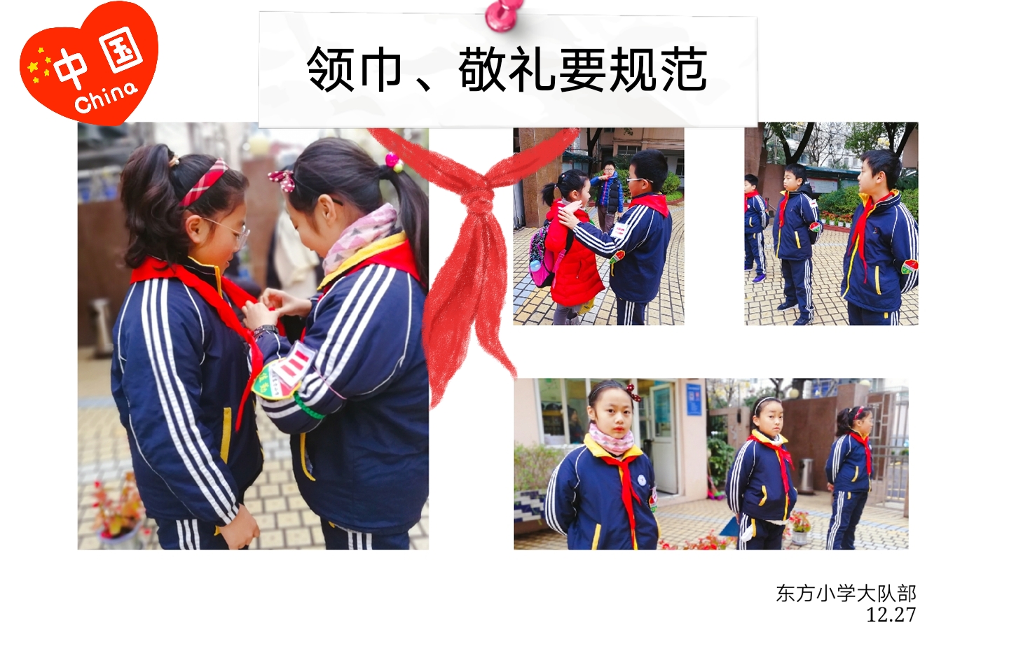 2018年就要结束,新的一年就要来到,在这辞旧迎新的时刻,为了更加规范少先队员的礼仪,激发队员们对少先队组织的热爱之情,东方小学大队部在新年来临的最后一周开展了“爱护红领巾 队员讲文明”活动。