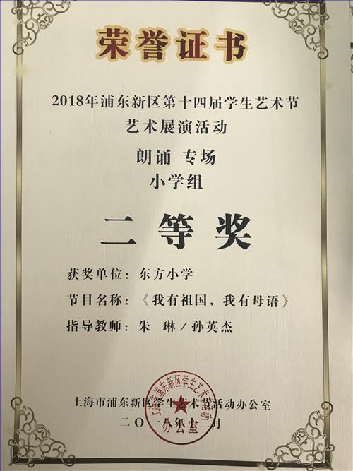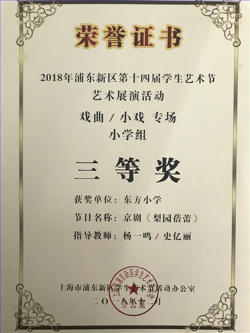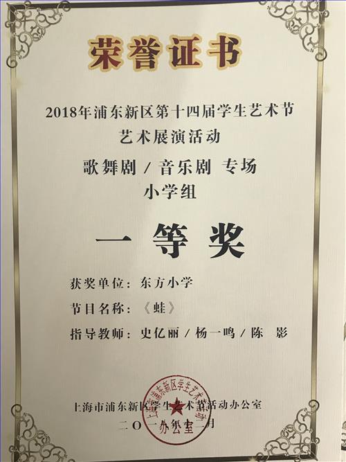 经历2018,走进2019,勤于耕耘的人们迎来了丰收的季节。近日获悉,在浦东新区第十四届学生艺术节艺术展演的各项专场比赛中,东方小学成绩喜人,捷报频传。真可谓:新区展演迎丰收,艺教耕耘绽风采!