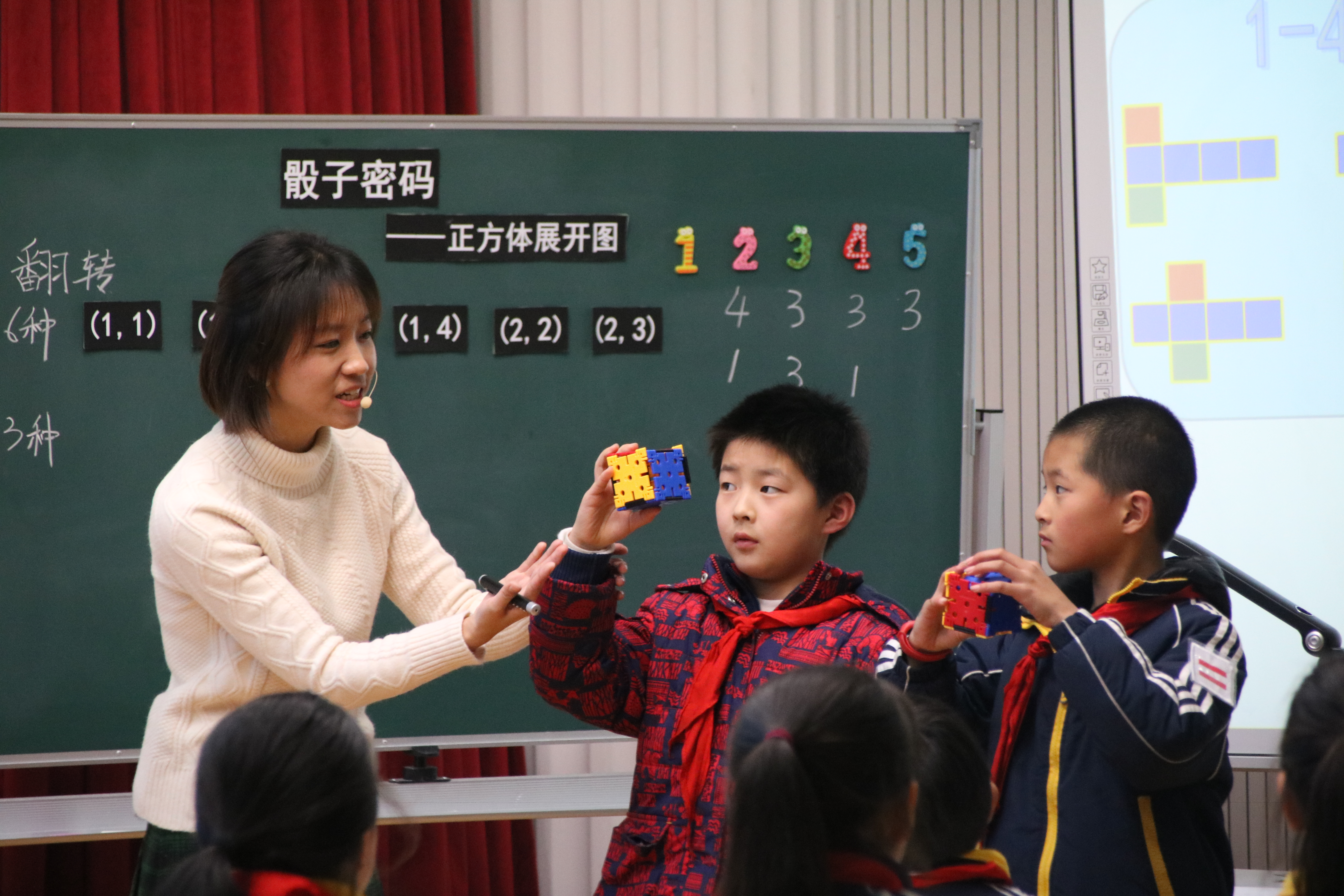 观课结束后,教师代表们从学习方式、教学内容选择及教学要求和教学组织这三方面,发表了各自的见解。来自英语教研组的马逸凡老师说道:在整个教学过程中,充分体现了“玩中学”的教育理念,也体验到“超脑麦斯”的无限创意和神奇之处。在这样充满快乐的课堂上孩子们的思维得到了锻炼,想象力和创造力得到了发展,充分挖掘了学生的动手、动脑能力。最终实现以“玩”促学、以“玩”促思、以“玩”促创的目的,努力让每个学生发现数学的魅力。而来自综合教研组的王舜老师表示:本堂课中,学生探究发现正方体展开面都有什么相同点,在找规律的过程中学生初步感知了归纳的数学思想。结合自身所教课程,在劳技课四年级上第一单元中也有类似的内容(制作纸盒),也是先设计画出正方体展开面,再折、粘贴成纸盒。不同的是,正方体纸盒可以分为有盖和无盖两类。也就是说展开图分为五个面和六个面两大类。
