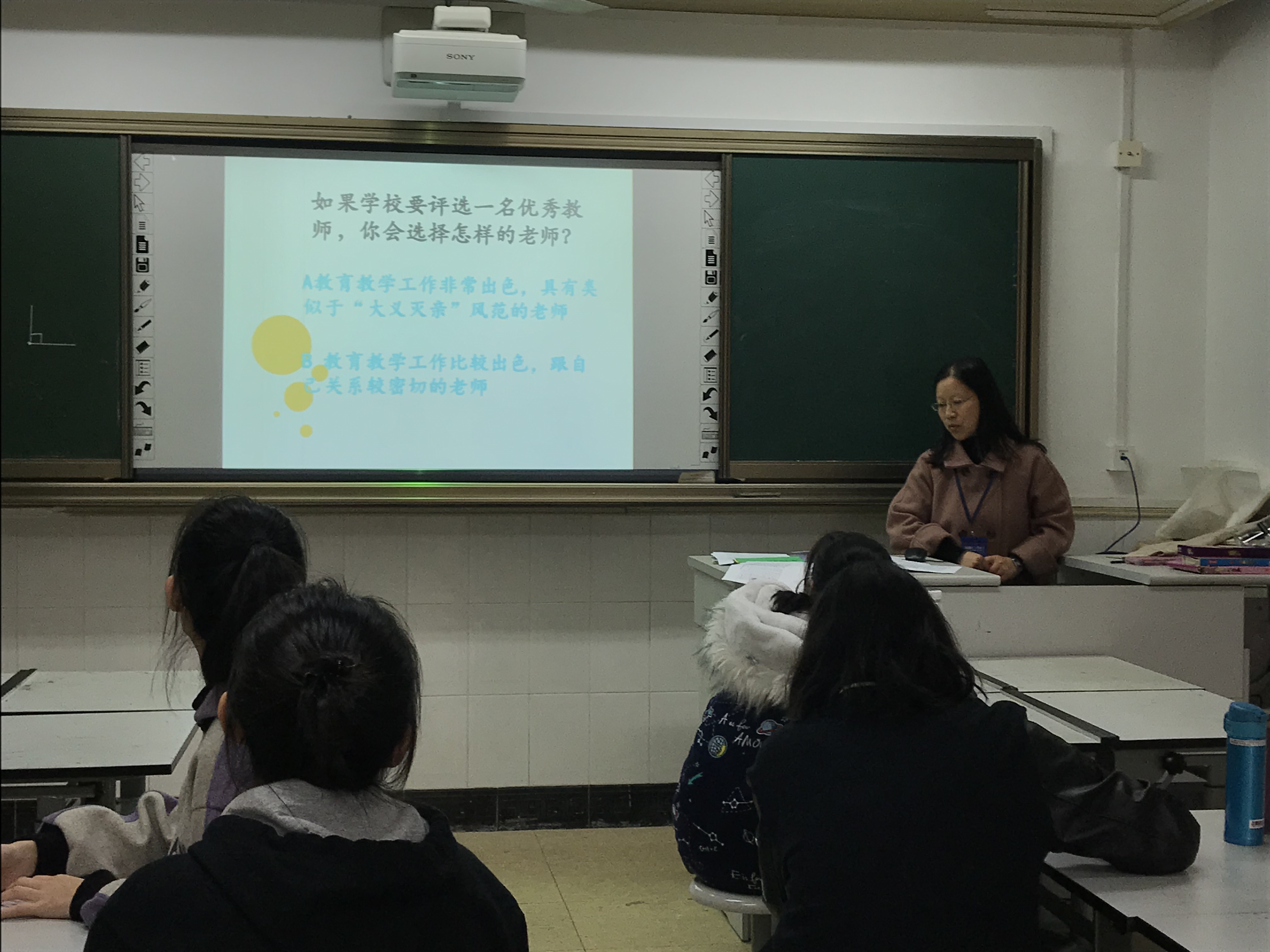 本次集训有三个微型讲座,第一个由彭英老师讲授“班主任工作中的一些常用方法”,第二个由陈影老师讲授“板书的作用”,第三个由宋惠龙老师讲授“如何学写校园新闻叙事案例”。