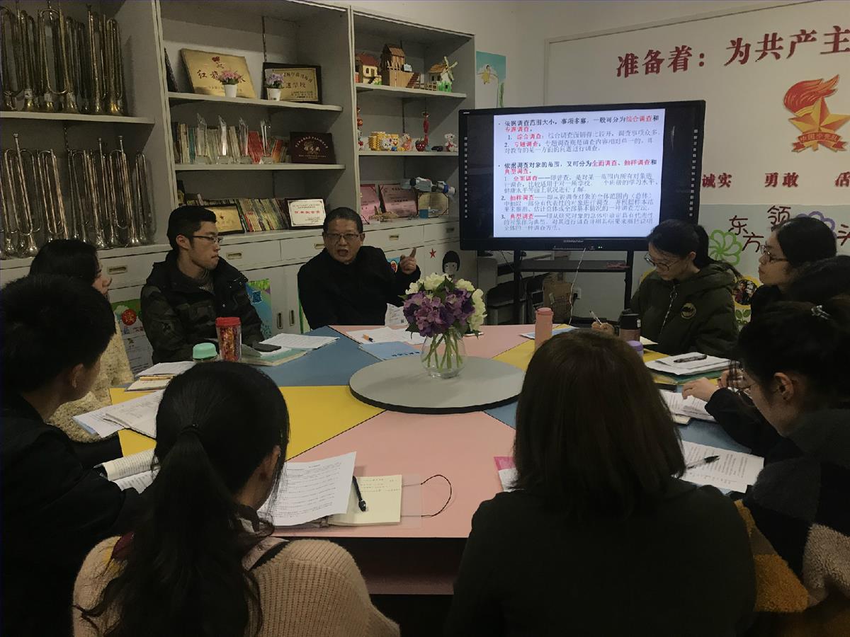 宋老师带新教师走进了一个较为陌生的领域——如何做教育调查?从教育科研方面入手,使新教师的能力更为全面。首先,播放两个反映了一些教育现象的视频供教师们选择角度,接着详细介绍调差研究法的主要类别,了解撰写教育调研报告的方法。宋老师将较枯燥知识掰开揉碎,融合进实践练习中。