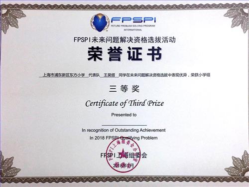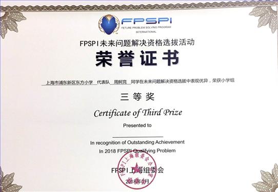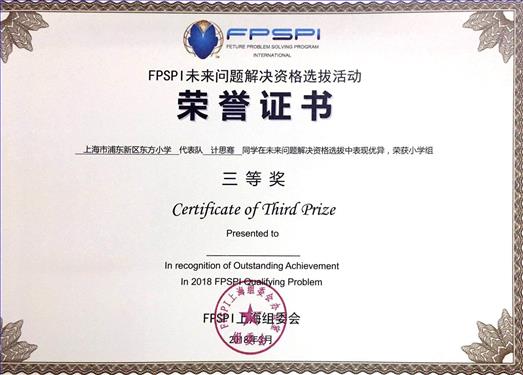 四名同学都是首次参加该比赛,在比赛前认真研究,查找相关的资料,近一个月的每次培训中都会积极思考和探讨。比赛现场,更是卯足了劲,3个小时的头脑风暴中,顺利地完成了所有答题,在英语组老师们的帮助下,及时地将答卷翻译成英文版,最终获得上海市选拔赛小学组三等奖的好成绩。