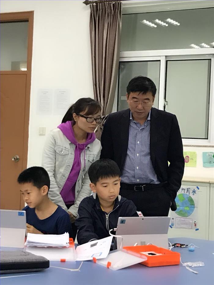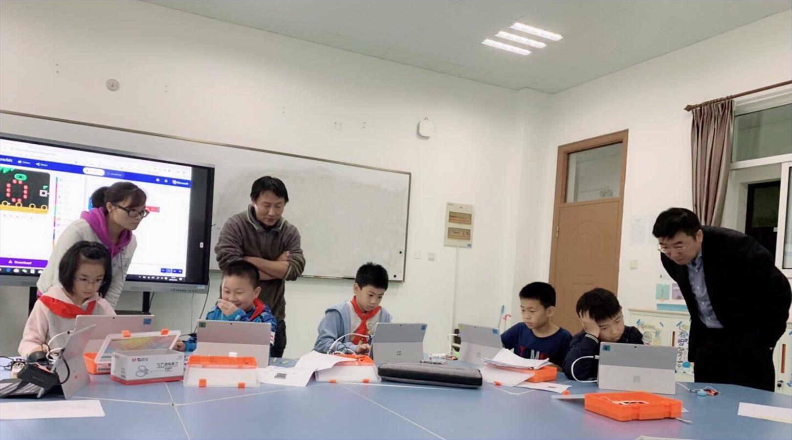 4月30日下午,东方小学区级课题《基于信息技术素养的小学Microbit拓展型课程的实践与研究》课题组的刘智斌、杜翠翠、姚嗣思和王舜等一行四位老师来到兄弟校花木中心小学,观摩研讨了由花木中心小学朱佩清老师和东方小学刘智斌老师共同执教开展的 Mirobit拓展型课程。