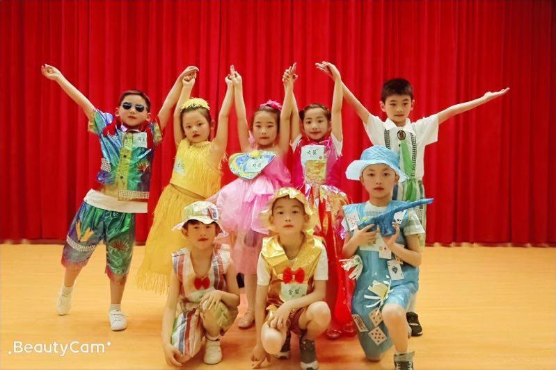 一件件靓丽的服饰、一个个萌萌的表情、一串串可爱的动作,充分融入了绿色环保、健康文明、简单节约的生活理念,博得了围观的家长和老师们的掌声点赞,大家还不时地按下手机,唯恐漏掉精彩的细节。在此次活动中,孩子们经历了奇思妙想、大胆设计、动手制作、排练展示等一系列体验,进一步体会到了废物循环利用的乐趣与意义。一张张废纸片、一只只旧纸箱、一片片旧光碟,通过家长和小朋友灵巧的双手,全都变成了各式各样亮丽的“新装”,争奇斗艳,充分体现了废物利用的环保理念。