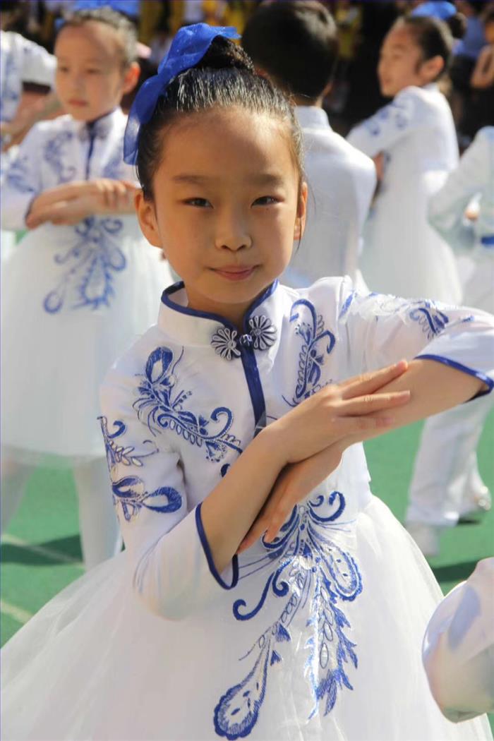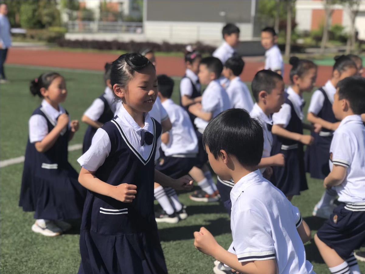 比赛当天39个班队都开足马力,无论是服装还是队列都下足了很多功夫。除了各色靓丽的演出服,在队形编排上,更突出班主任、家委会代表的智慧与特长。在明快动感的音乐伴奏下,每支参赛队伍动作整齐划一,鞠躬、牵手、进退步、旋转、挥手……轻快的舞步伴着律感的音乐,体育恰恰舞蹈的张力与欢快明朗的现场气氛再一次让东方的绿草坪成为一个闪亮的舞台、欢乐的海洋,每一个孩子都展现出健康向上的精神风貌,舞出了激情,秀出了最美的自我。每班的表演各具风采,令人眼花缭乱,叹为观止。