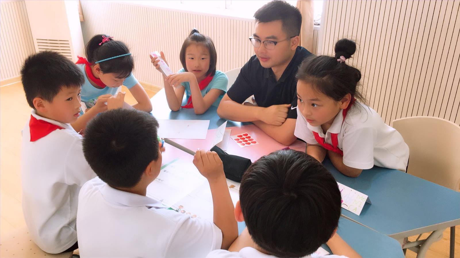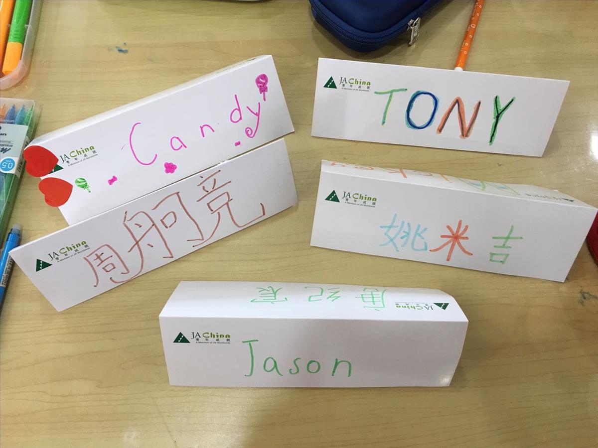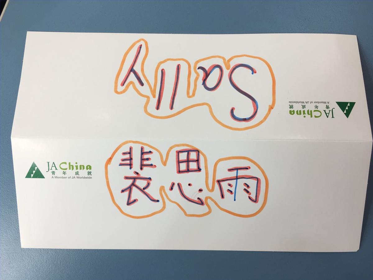 课程伊始,学生们就在志愿者老师的带领下为自己设计铭牌,大家发挥想象,大胆构思,用彩笔在纸上描绘出拥有自己特色的设计。3分钟后一张张别具一格的铭牌就应运而生了。
