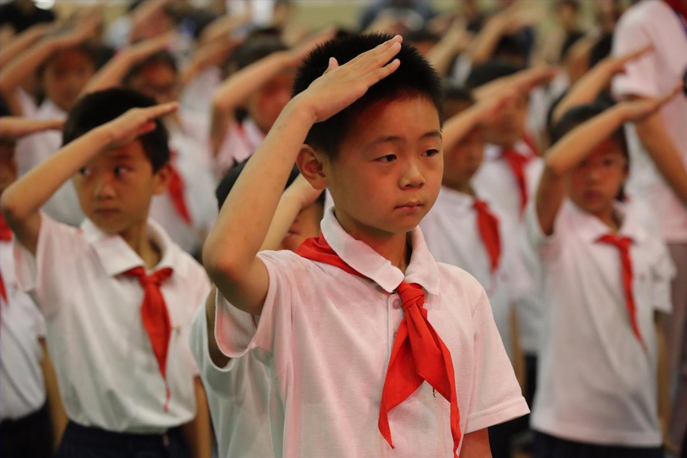 六月四日上午,在激昂的少先队出旗曲中,东方小学懿德校区二年级的学生们在校内体育馆举行了隆重的“争做追梦好少年——2019年浦东新区东方小学少先队入队仪式”。同学们以他们饱满的热情、积极的行动展示了当代青少年朝气蓬勃、意气风发的良好精神面貌。