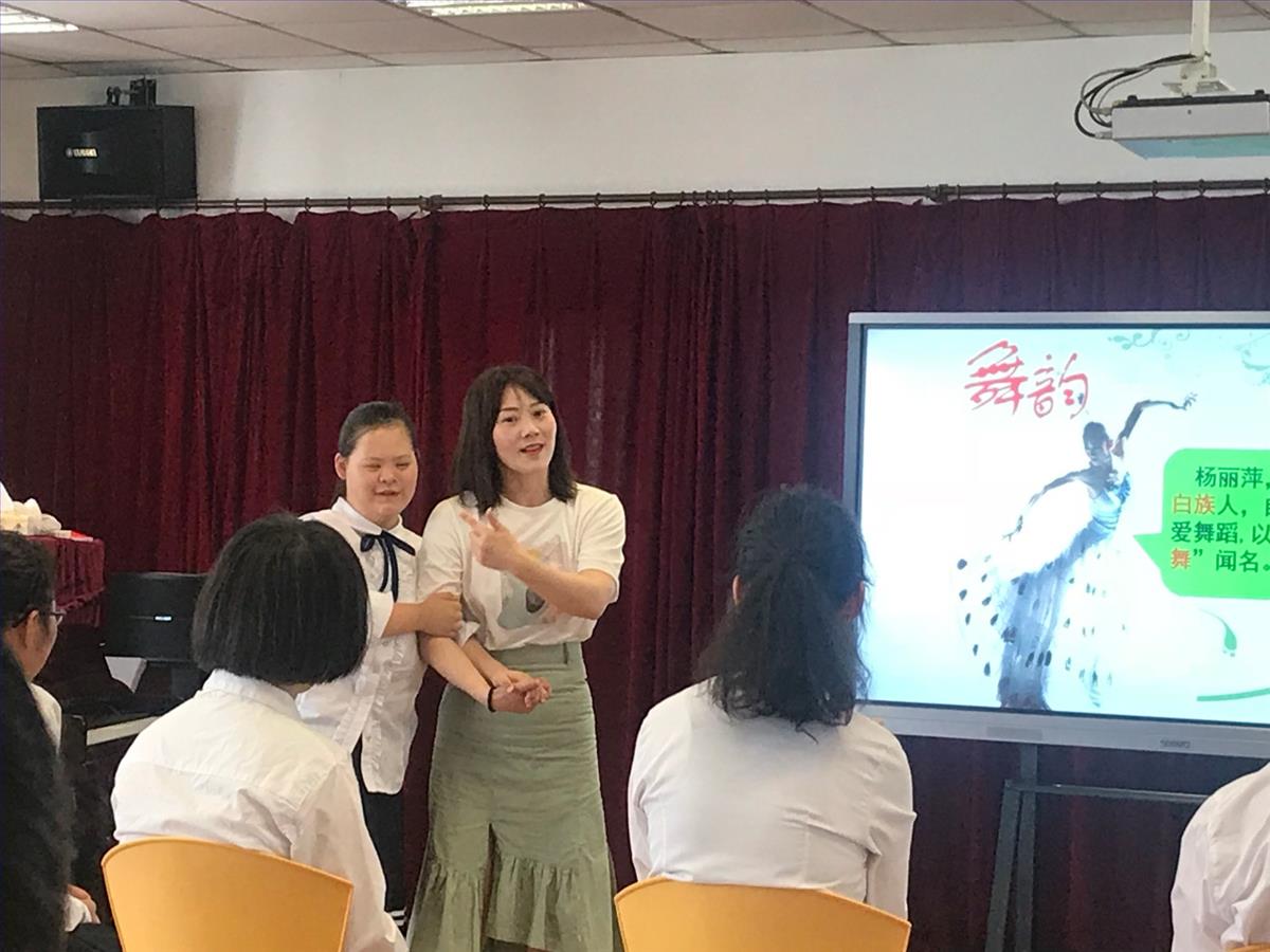 6月4日下午,东方小学教师发展处组织见习教师走进新区特殊教育学校,观摩了一节爱意满满、生动美妙的音乐课,由浦东新区骨干教师张方燕老师执教的音乐课《舞韵》(自编教材)。
