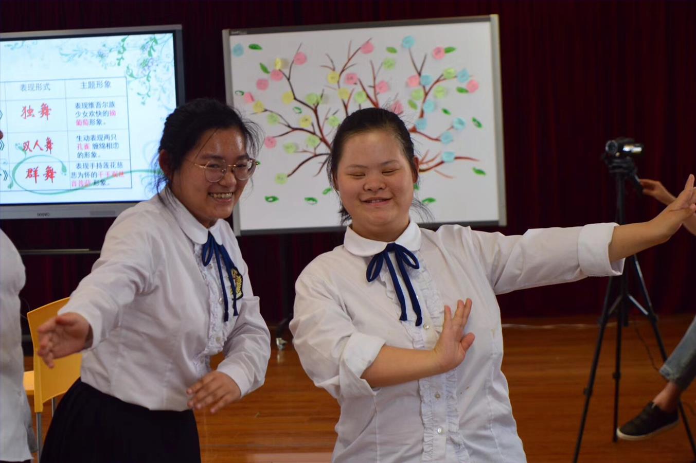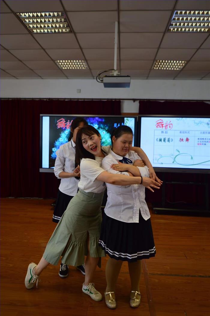 班级里的10位同学因先天或后天原因,患有不同程度的智力障碍,有的是自闭症儿童,语言和身体动作难以自控。但是,在观摩课堂上,老师们惊奇地发现,他们在课堂上,尽全力回答老师的每一个提问,努力模仿老师的舞蹈动作,一脸真诚地为其他小同学点赞、喝彩“你真棒!”;舞蹈表演环节中,你会发现,他们对音乐、旋律乃至每一位“表演者”充满了好奇,有时静静地倾听,有时笑容满面地比划手脚、模仿动作,有时你感觉他们和我们很不一样,有时却觉得他们和我们没什么不一样。
