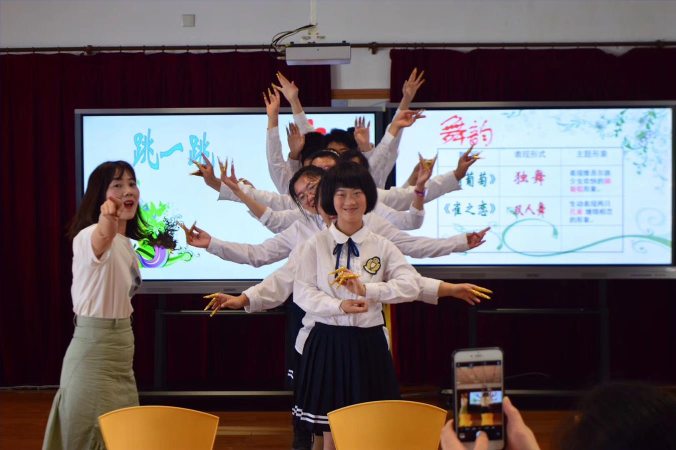 张老师给孩子们欣赏了三种表现形式的中国舞,她的教学语言亲切自然,师生之间的互动积极有效,真可谓亮点纷呈。此次观课给我留下了非常深刻的印象,张老师对这些孩子们非常耐心,总是给予最大的鼓励,使他们勇于释放自己。