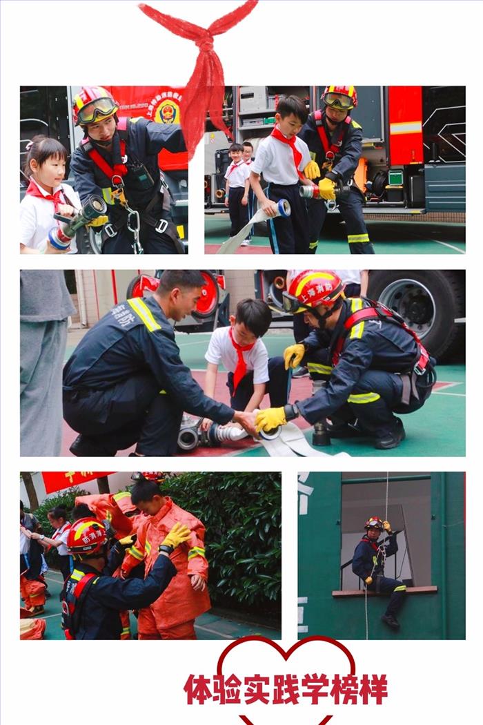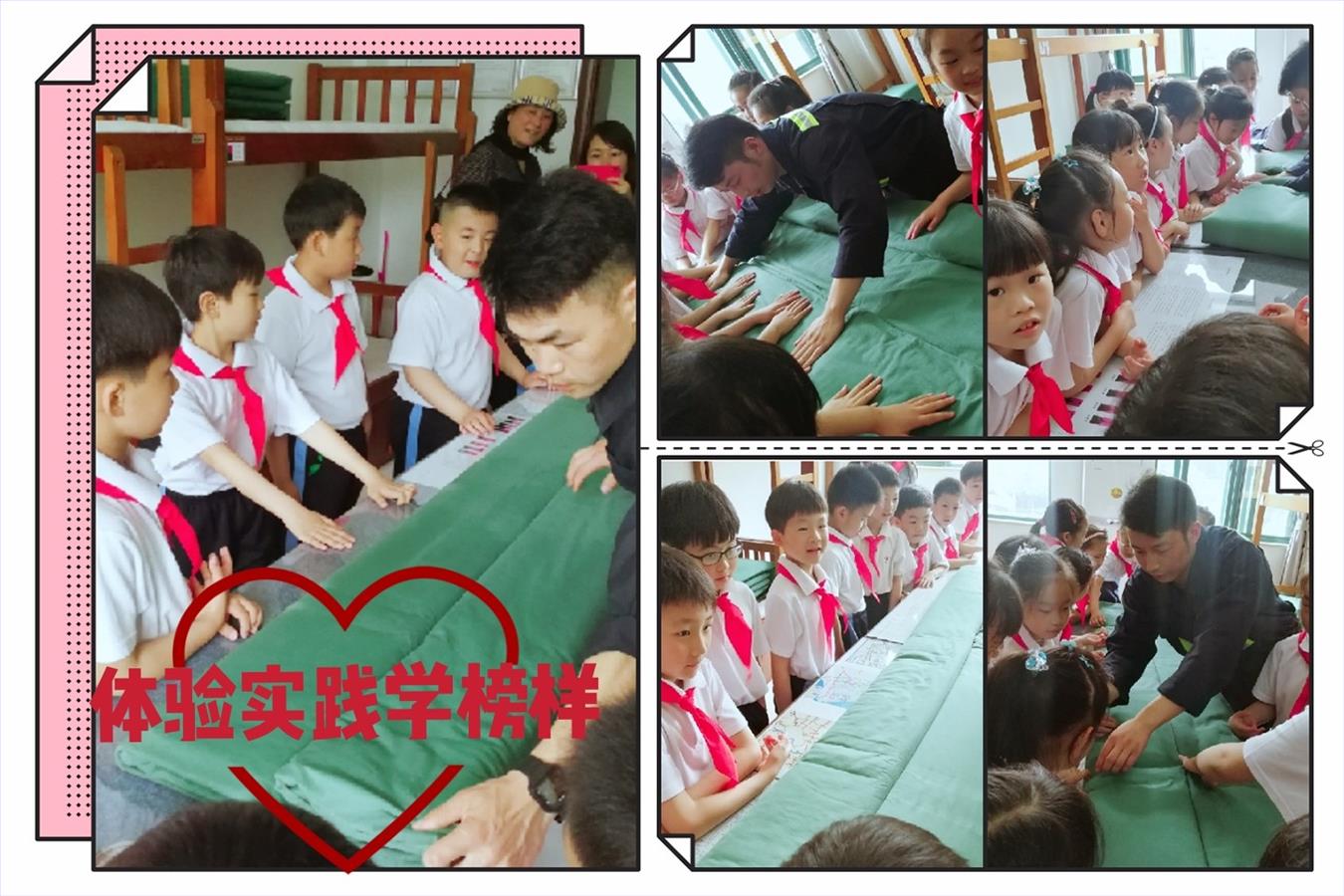 动手实践学榜样:参观消防支队的寝室并实际操作叠被。