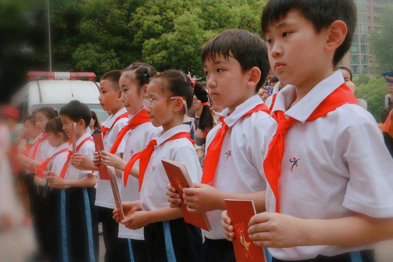 紧接着,佘瑛副校长和校外辅导员陆弈老师为新队员们颁发《少先队员证》;二(3)中队的陈雨同学作为队员代表发言,她表达了自己作为一位少先队员的理想与愿望。