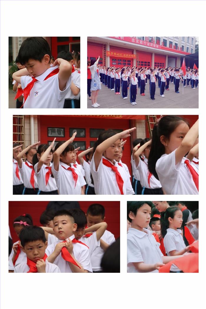 在大家的期待中,队员们迎来了最光荣的时刻。年级主管彭英老师在大家的期待中宣读了新队员名单,辅导员、家长代表和消防员叔叔为新队员授予红领巾。戴上鲜艳的红领巾,新队员们脸上顿时洋溢出自豪与喜悦的笑容。一声令下,队员的小手齐齐举过头顶,庄严地献上自己人生中的第一个少先队队礼!