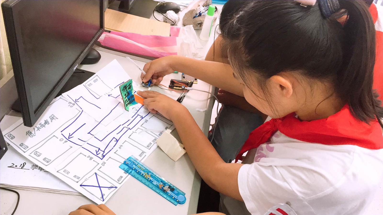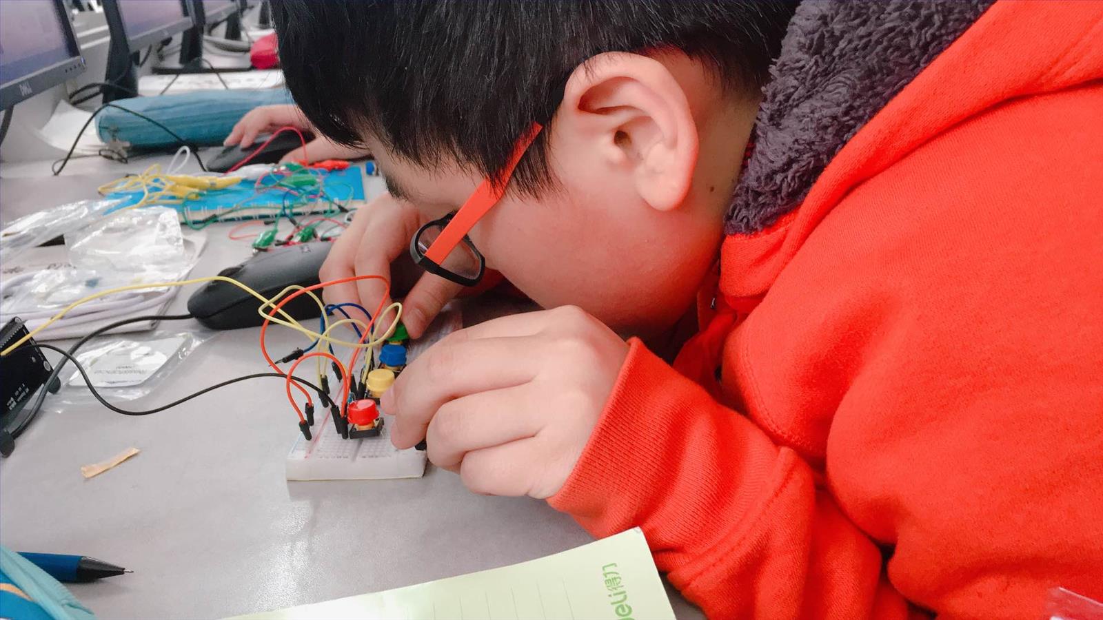 Micro:bit课程开展了两个学期,本课程的学员从零基础开始学习,先学会基础模块,再慢慢实现小作品,最后小组共同完成比较有创意有想法的作品。