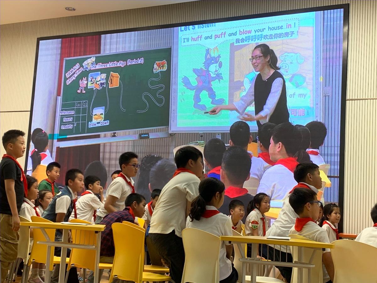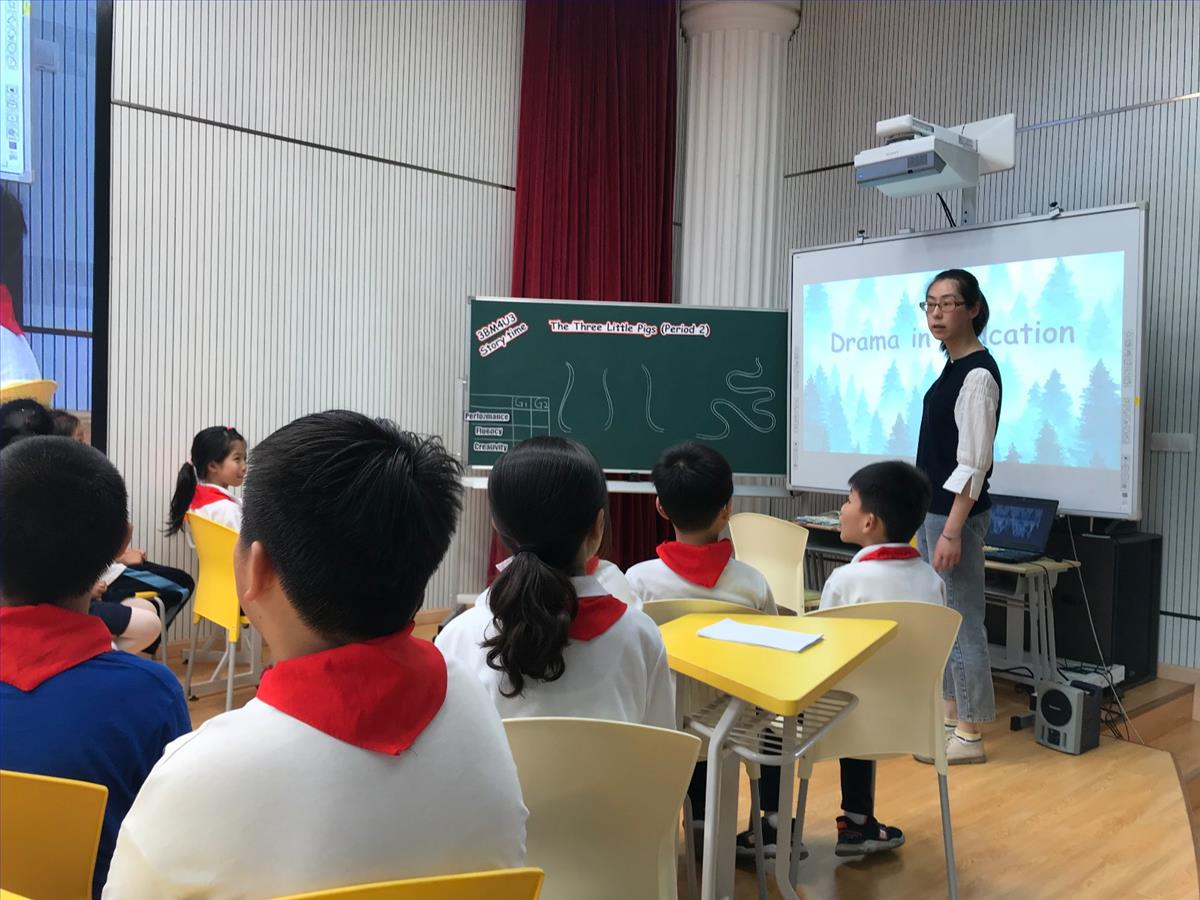 6月14日下午,东方小学英语组迎来了新一轮的校级研讨活动,此次的执教老师为英语组优秀研修教师谈燕盛老师。她带来的是一堂借助教育戏剧元素提升小学生故事阅读的英语课。从课堂设计、课件制作、板书剪贴、评价激励等环节来看,谈老师非常努力和用心。本单元的主题是围绕三年级课本中的一篇名为The Three Little Pigs的故事展开,在跌宕的情节冲突中,学习相关词汇和句式,并在故事聆听、模拟、角色扮演的过程中,知道故事内容,体会人物心情,并收获自己的感悟。东方小学全体教师参与了本次课例演绎的观摩和研讨的整个过程。