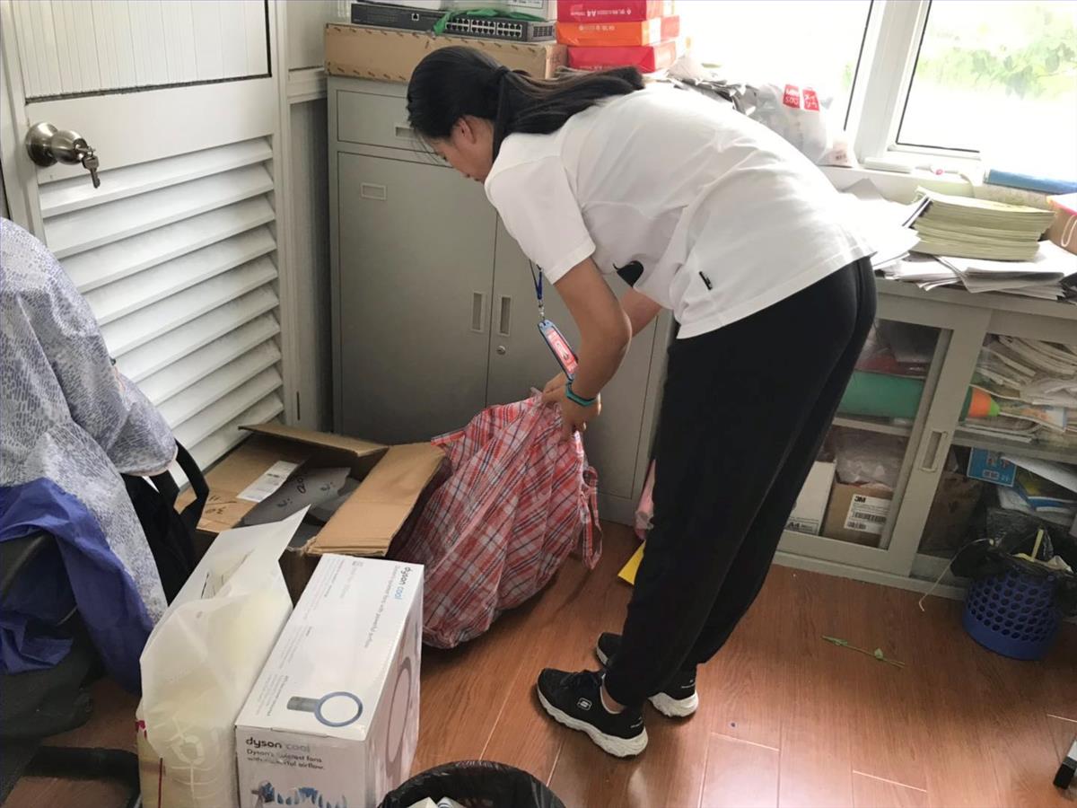 1、工会组的王雁老师作为年级主管、语文组长和班主任,工作繁忙,有时候东西整理到一半,就又会被其他事情打断,李老师看到了,主动帮助王雁老师进行整理,她不嫌脏不嫌累,沉重的麻袋,她也一人两手使劲拽起,当我前去想要帮忙时,李老师会开玩笑地说:“不接受病人的帮忙!”