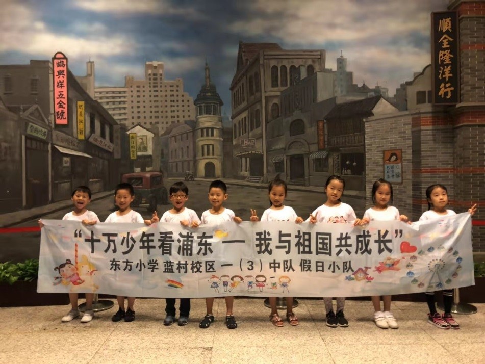 穿上统一的班服,带上班级的横幅,2019年7月13日上午9点30分,东方小学蓝村校区一(3)中队的八位同学结伴来到了位于上海市浦东新区世纪大道1号——上海城市历史发展陈列馆。许多同学虽然在上海生活,在上海成长,对于上海的变迁历史却一问三不知,第一次来到这里,站在具有上海特色的石库门建筑前,同学们的脑袋里充满了好奇和疑问:这里面有什么呢?好不好玩?