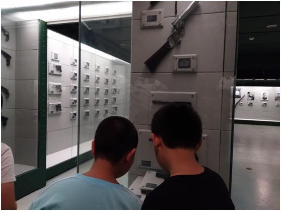 一进博物馆,巨幅浮雕呈现在同学们的眼前,上面的人物栩栩如生,让大家肃然起敬;五根立柱装饰以五个警种的警察形象,它们分别代表了刑事警、治安警、交巡警、消防警、看守警五大警种。大厅另外一边是纪念品商店,出售一些和公安有关的纪念品。