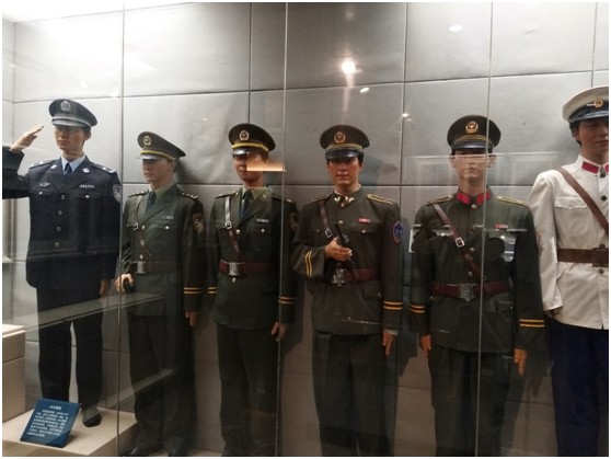 让队员们感到亲切的是展馆中陈列的从解放区开始的各时期人民警察的服装,从早期的脱胎于军装的绿警服到现代的与国际接轨的藏青色警服,显示了人民警察在正规化、现代化建设中走过的道路。