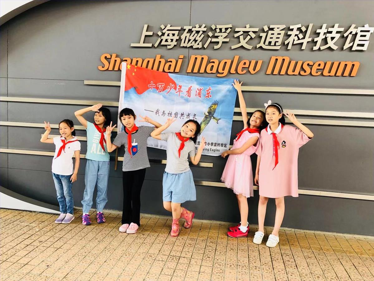 二零一九年七月二十八日中午十三点,东方小学蓝村校区三(2)中队的六位队员结伴来到了龙阳路2100号——上海磁浮交通科技馆。上海的磁悬浮列车为什么会那么快?到底有什么秘密?大家都想一探这极速的秘密呢!