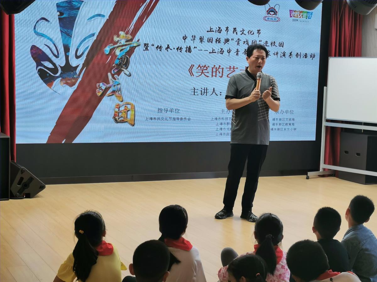 9月28日下午,上海市滑稽戏团副团长钱程先生带着滑稽戏团青年演员走进了东方小学,给孩子们带来了精彩的讲座《笑的艺术》以及滑稽戏表演。