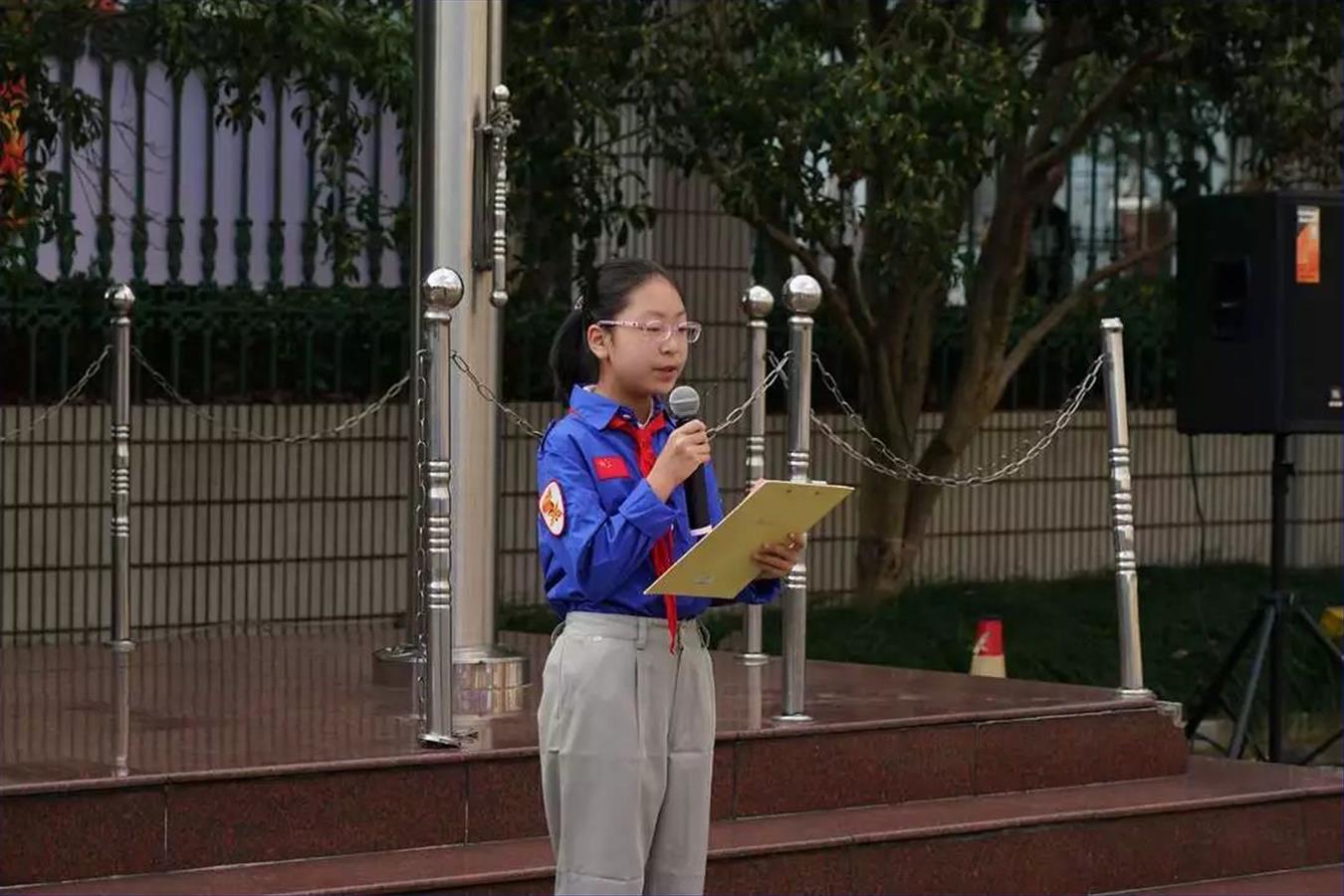 东方小学的瞿嘉珺、韦怡菲、汪锦鹏、傅逸凡四位队员担任出旗手,姚睿婷同学在升旗仪式上发言,宣读“国旗下讲话”。共计20名队员及其家长参与了这一意义非凡的仪式。
