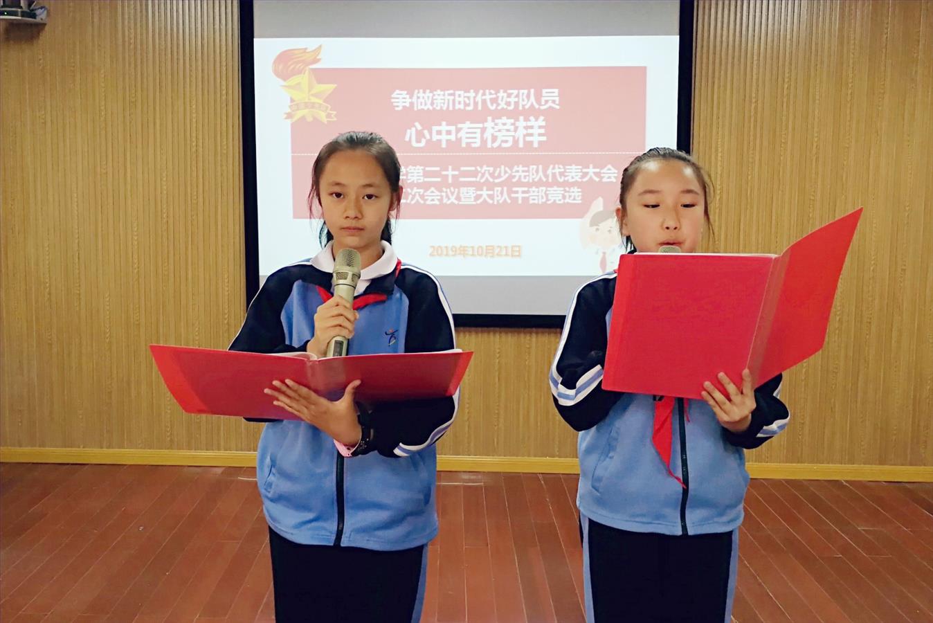 在10月28日少代会闭幕式上,通过现场视频直播,两个校区的少代表同步收看。东方小学的大队辅导员李老师宣读了大会决议,宣布了新一届大队委员会的名单。而后学校行政人员和教师代表为履新的大队委员们佩戴了标志。期待新任的大队委员们在少先队组织和辅导员的指导、帮助下,一定能够出色地完成少先队各项任务,扎实地开展好各项活动。