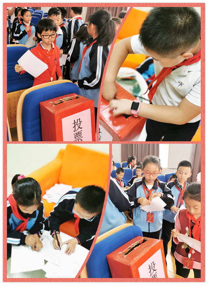 自己的干部自己选。候选人的才艺展示结束之后,少代表纷纷投上了自己神圣的一票。监票员、唱票员也由队员担任,大家坚信一定能选出自己心目中的好干部。