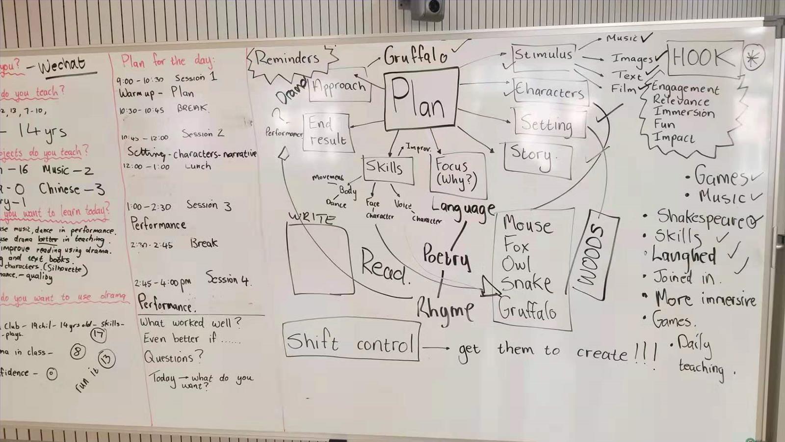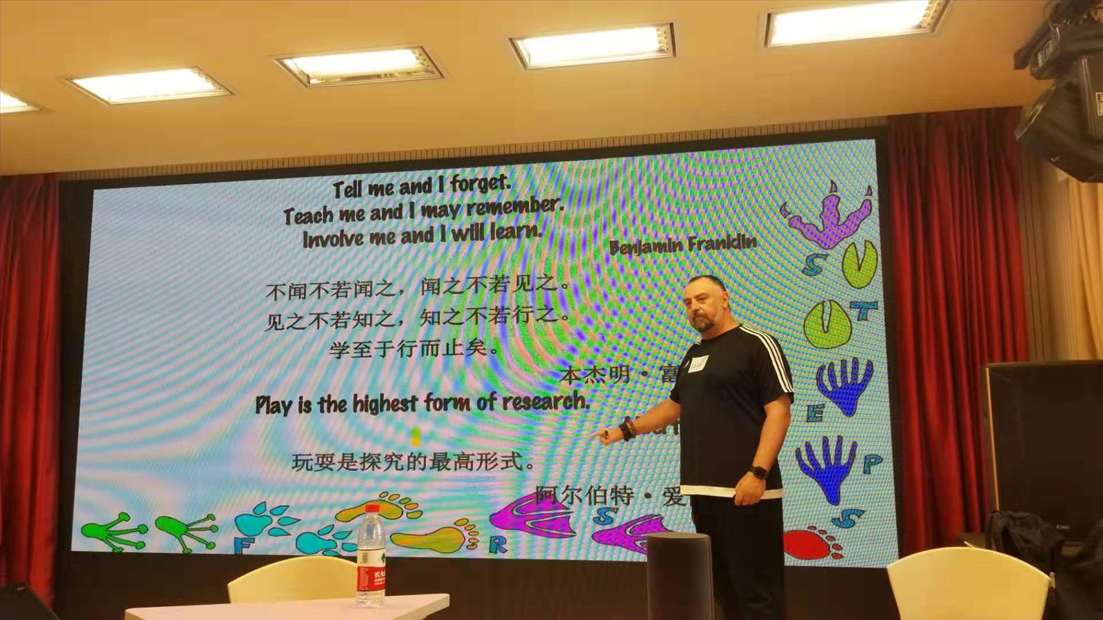 为期两天的工作坊,这位52岁的戏剧教育专家全程都非常投入,非常敬业。他以独有的幽默,满腔的热情和丰富的戏剧教学经验引领着在场的每位老师感受着戏剧教学,深入体验着戏剧教学。每一个参与培训的人都会迫不及待地想将学到的知识运用到实践中去,尝试在戏剧课程中,带领孩子们上一节戏剧表演课;运用walk in text的方式让学生们感受语言的韵律,感受戏剧的魅力。相信通过此次培训,能给老师们在课堂上带来不一样的精彩!