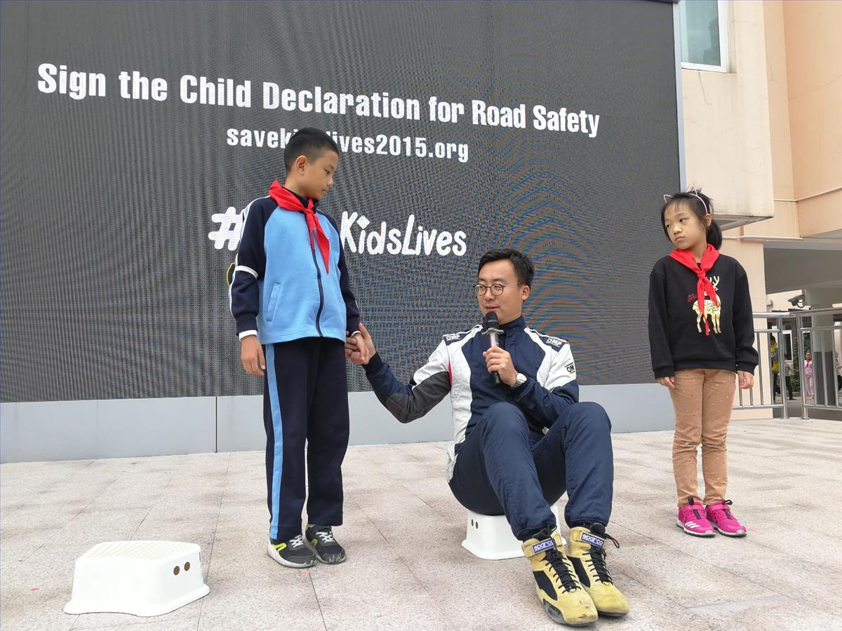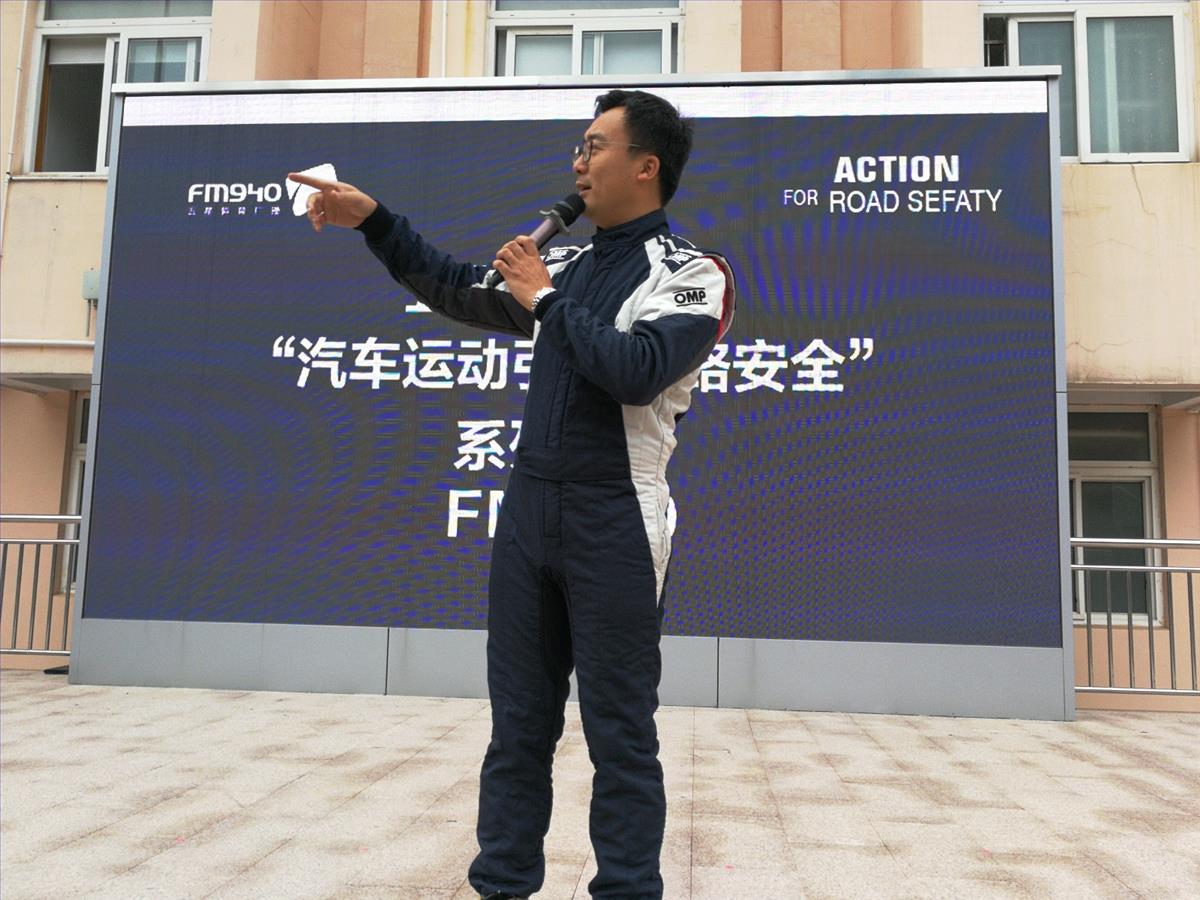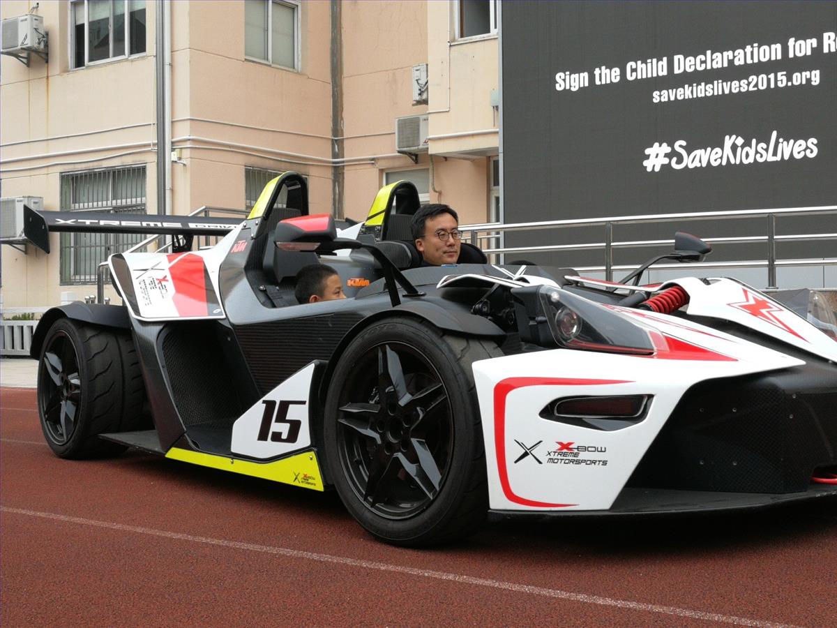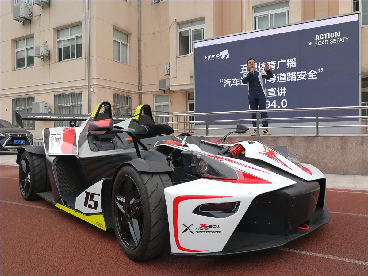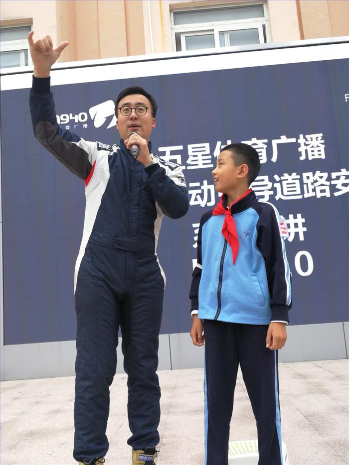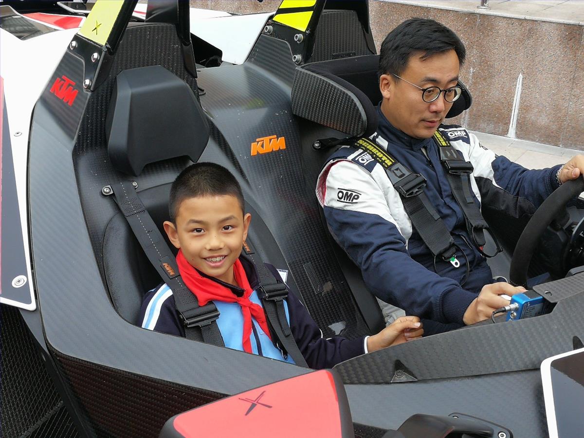 更让同学们兴奋不已的是,刘雅东老师穿着职业的赛车服,驾驶着赛车与章乐诚同学一起在操场上驰骋。刘老师表示,让赛车及其系列装备进入学校,就是为了激发学生的兴趣点,通过对汽车运动的爱好,渐渐传输赛车及日常交通规则的常识,从小培养孩子们出行的安全意识。