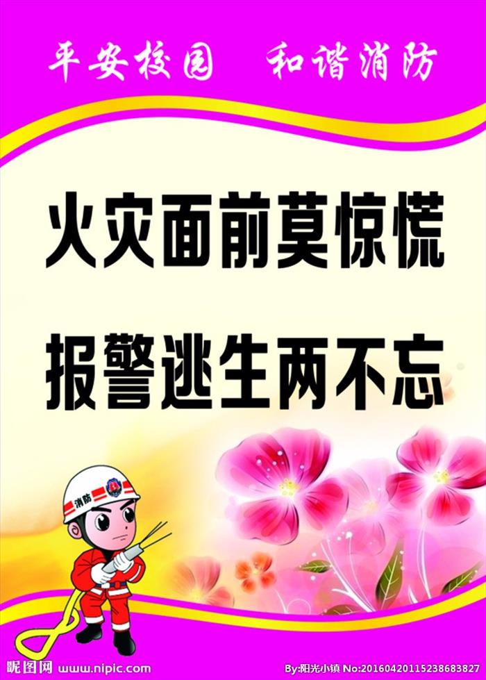 2、遇到火灾时不能慌乱,不能大喊大叫,要听从老师的组织有秩序的逃生。