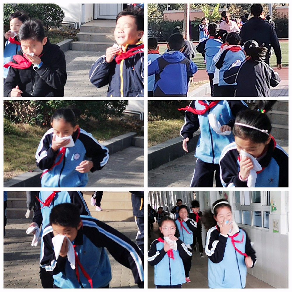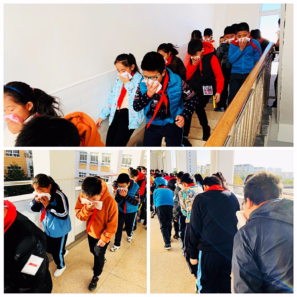 经过9、10月两次消防演习,每一位同学对消防逃生有了少许的经验。“滴嘟滴嘟……”当警报声响彻校园的上空,紧张的情绪瞬间蔓延在每个人的心间。只看到学生们用湿毛巾捂住口鼻,弯腰俯身,迅速从教学楼撤离。