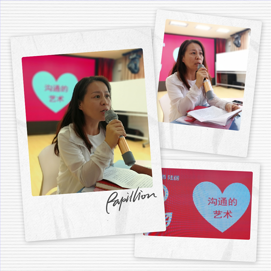 第二个环节是有着多年班级管理及教育教学经验的区班主任骨干教师(蓝村校区一年级年级组长)陆丽老师,开展了《沟通的艺术》为主题的微型讲座,陆老师用自己的亲身案例现身说法,解析班主任好似一个桥梁建筑师,每天都需要和学生、家长和课任老师进行沟通,而班级管理中的很多问题都和“沟通”有着千丝万缕的关系。面对家长,要以诚相待,学生们来自不同的家庭,每个家长的文化水平、个人素养、生活环境都不尽相同。老师要站在家长的角度,共同研究学生的成长问题,只有家校联手才能更助学生的成长。