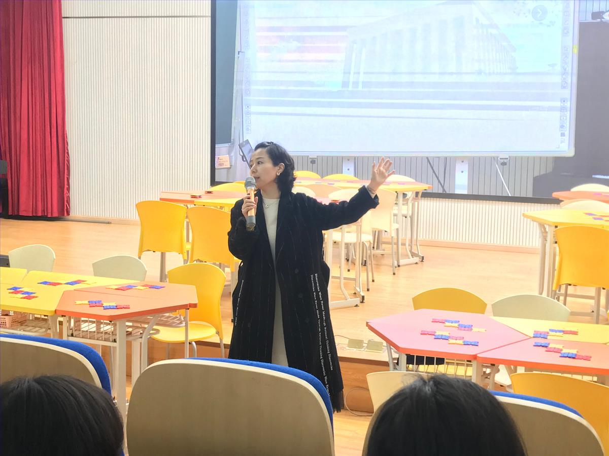 之后,观课的其他教师们也发表了各自的见解。来自语文教研组的李蕴白老师和英语教研组的秦忆青老师都提到了“想象力”,即学生在整堂课中由具体操作到最后的抽象思考,在一次次的尝试中逐步提升了学生的空间想象能力;来自综合教研组的康志文老师则表示:“本堂课知识点由浅入深,学生们在操作中掌握知识,整个过程学生们都十分投入”。