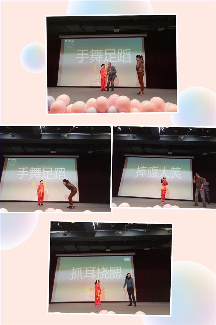 家长组织的小游戏,请几对家庭,来做动作猜成语,让孩子们开心一刻的同时,也感受到孩子与家长的配合默契,心有灵犀。