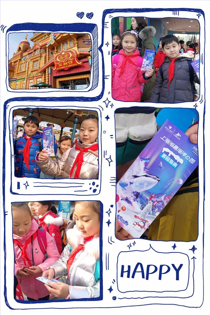 1月13日,东方小学的大队干部和优秀少先队员们跟随着冬令营的老师出发前往上海海昌海洋公园。一路上大家都在憧憬着海洋公园里的各种动物,期待着它们的各种表演。