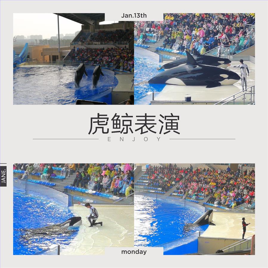 中午大家又汇聚到一起看了虎鲸的表演。硕大的虎鲸身上有着黑白两色,它是一种智商极高的动物被称为“海中霸王”。表演时驯兽师叔叔只要发出一个指令,它就能立刻领会完成相应的表演,真的是很聪明。