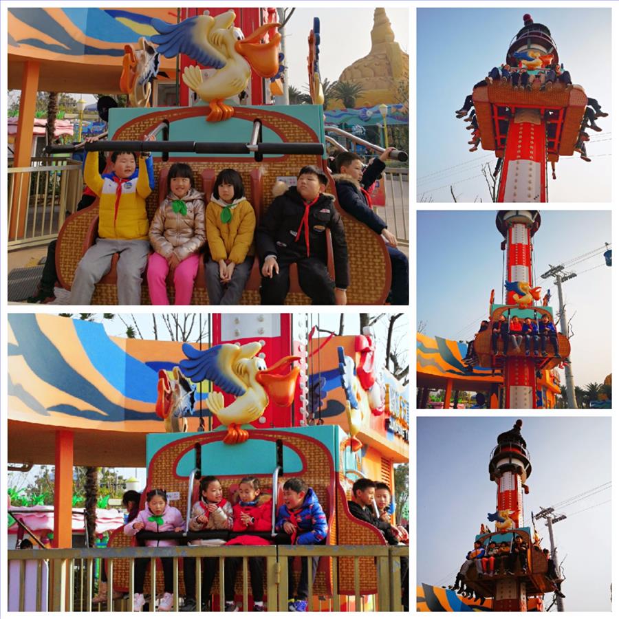 随后,大家去体验了一把过山车。“嗖”地一声,过山车冲上了轨道。它一会直冲上去,一会又俯冲下来,忽而左转,忽而右转。耳边的尖叫声直冲耳膜。太惊险了。