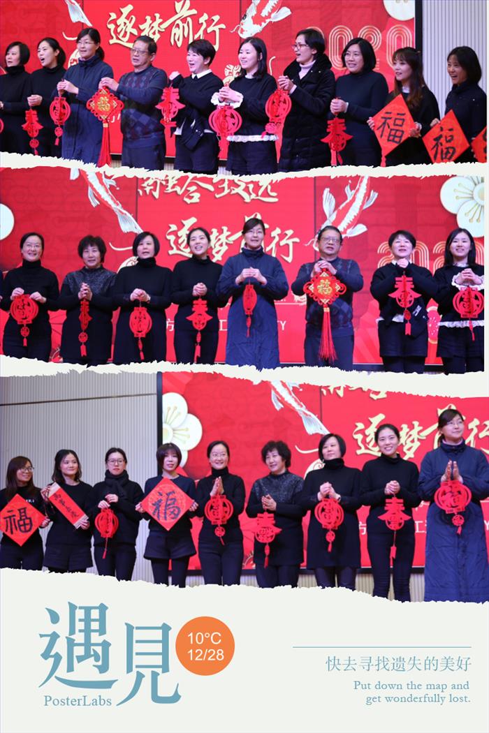 陆虹校长在学校青年教师合唱团《相亲相爱的一家人》的歌声中,为大家送上了新年祝福:祝老教师身体健康、福禄万寿;祝中年朋友,家庭和睦、事业有成;祝福青年朋友,砥砺前行、长足进步。